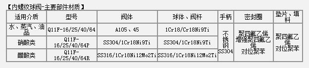 內(nèi)螺紋球閥也稱絲扣球閥,采用浮動球體結(jié)構(gòu),根據(jù)閥體形式的不同,分為一片式、二片式以及三片式。內(nèi)螺紋球閥以其結(jié)構(gòu)簡單、密封性能好、性價比高、多種閥體形式等特點,廣泛用于PN1.0~4.0MPa,工作溫度-29~180℃(密封圈為增強(qiáng)聚四氟乙烯)或-29~300℃(密封圈為對位聚苯),口徑≤DN100的各種管路上,選用不同的材質(zhì),可分別適用于水、蒸汽、油品、硝酸、醋酸等多種介質(zhì)。